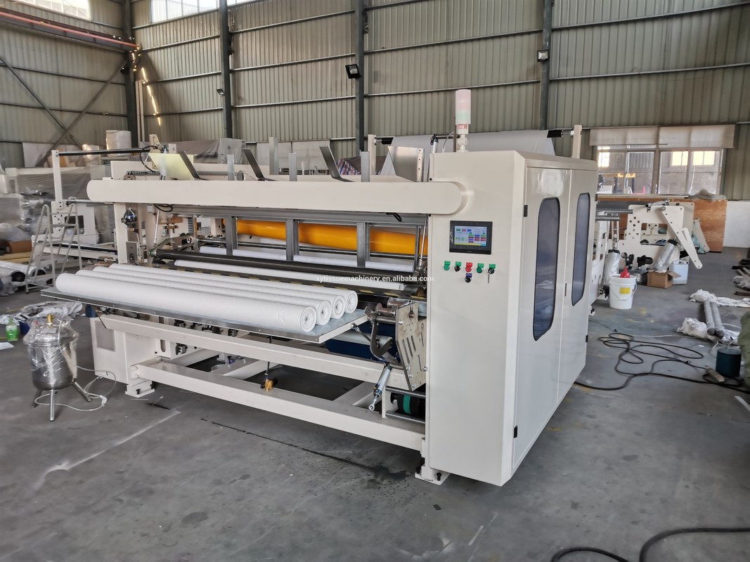 CE مناديل التواليت لفة النقش من نقطة إلى آلة التصفيحهو تثقيب وإعادة لف لفة الورق الخام الأصلية إلى أحجام مختلفة من لفافة ورق التواليت الصغيرة وفقًا للمطلوب.المنتج النهائي أنيق ، في حالة جيدة مع توتر متساوي ، إنه الخيار الأفضل لمصنع المناديل الورقية الجديد.
